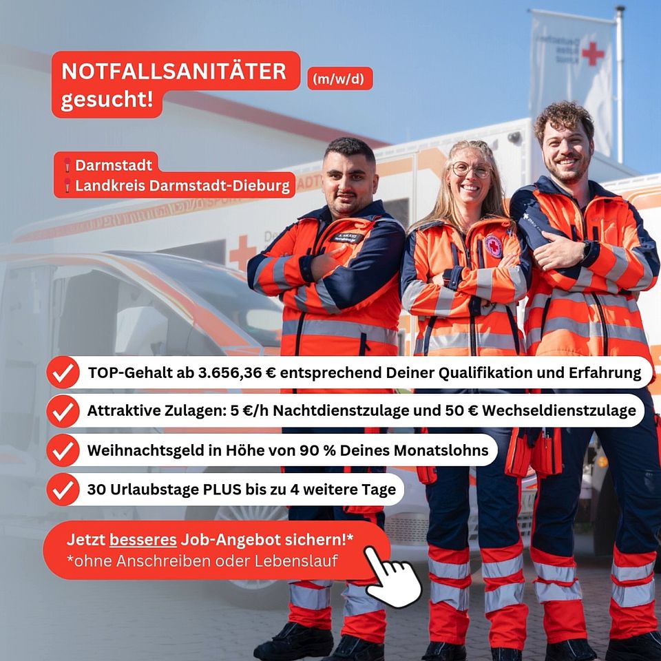 Wir suchen Notfallsanitäter (m/w/d) in Voll- und Teilzeit für den Rettungsdienstbereich Darmstadt und Darmstadt-Dieburg.